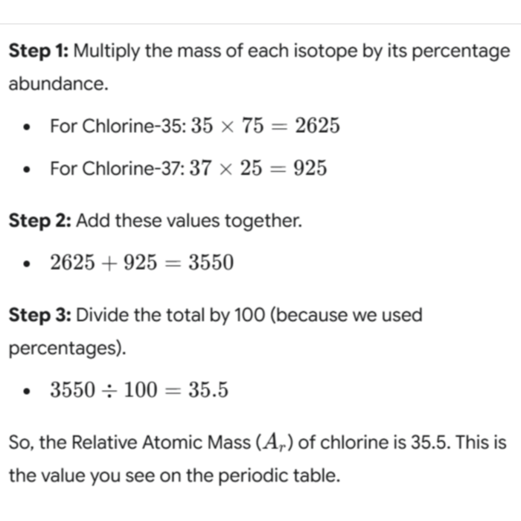 In any sample of chlorine, you’ll find that roughly 75% of it is the Chlorine-35 isotope and 25% is the Chlorine-37 isotope.