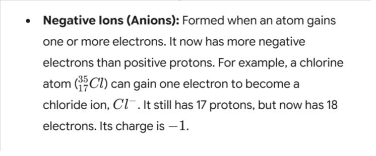Electrons: For a positive ion, subtract the charge from the atomic number. For a negative ion, add the charge to the atomic number.