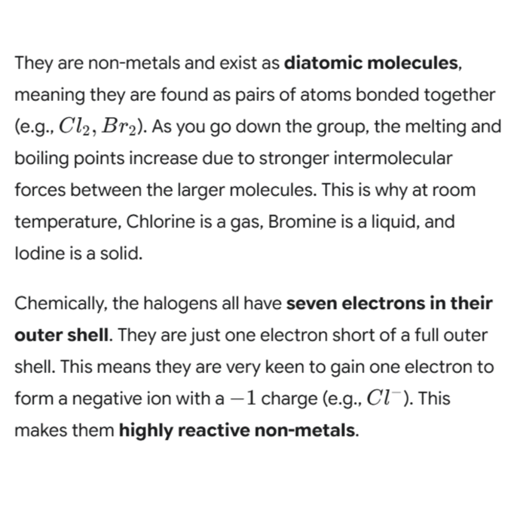 So, Fluorine is the most reactive halogen, and reactivity decreases down to Iodine.