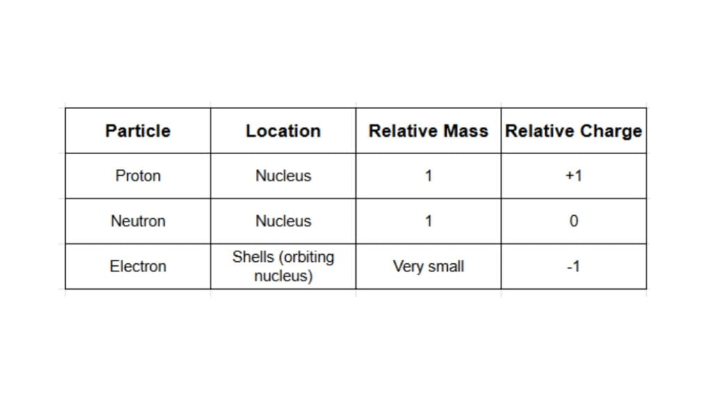 Electrons: Found in shells orbiting the nucleus. They have a negative charge.