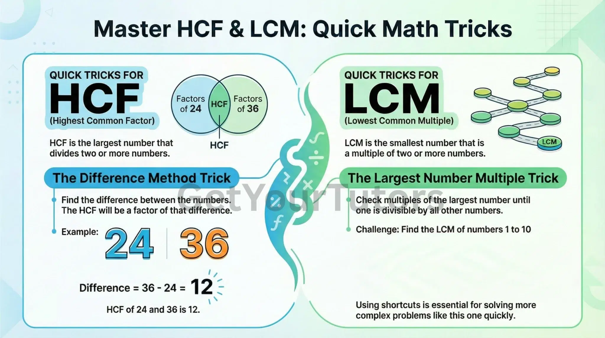 Many people ask, "What is the easiest way to find the LCM?" or "Is there a short trick for HCF?" Here are the mental math hacks used by experts.